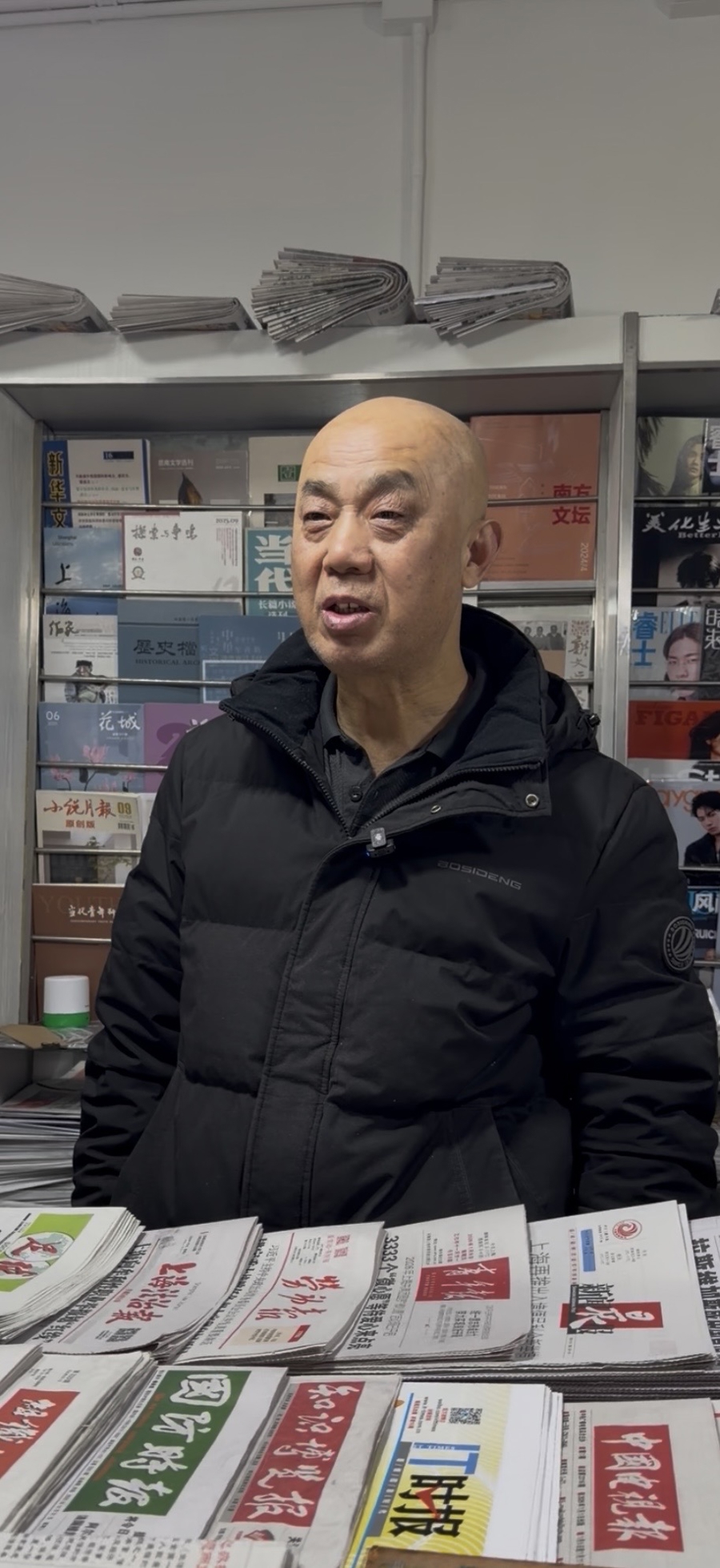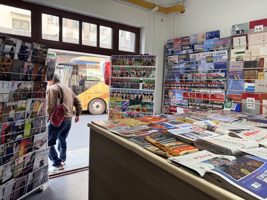 “报刊杂志和我们影视还是有许多关联的”,沈斌当即觉得,“这是一件值得做的事”。2023年底,沈斌在去上海市第一人民医院的路上,偶然路过开在吴淞路上的报刊门市部。“我第一感觉是很奇怪,我以为上海已经没有书报摊了。”他走进这家只有十几平方米的小店,发现报刊种类非常丰富,惊喜万分。