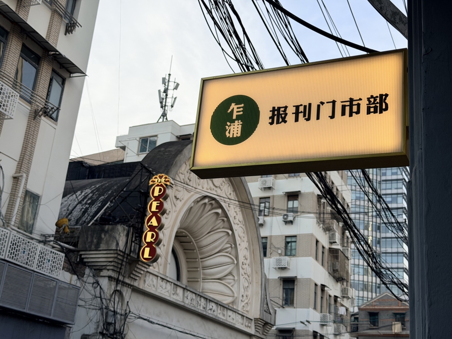 开在乍浦路风貌影视街上的报刊门市部灯箱。李昂 摄